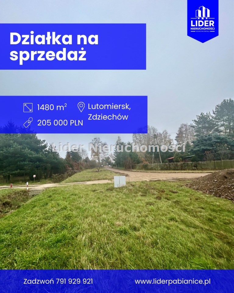 Na sprzedaż działka budowlana o powierzchni 1480m², położona w malowniczej miejscowości Zdziechów , w gminie Lutomiersk.