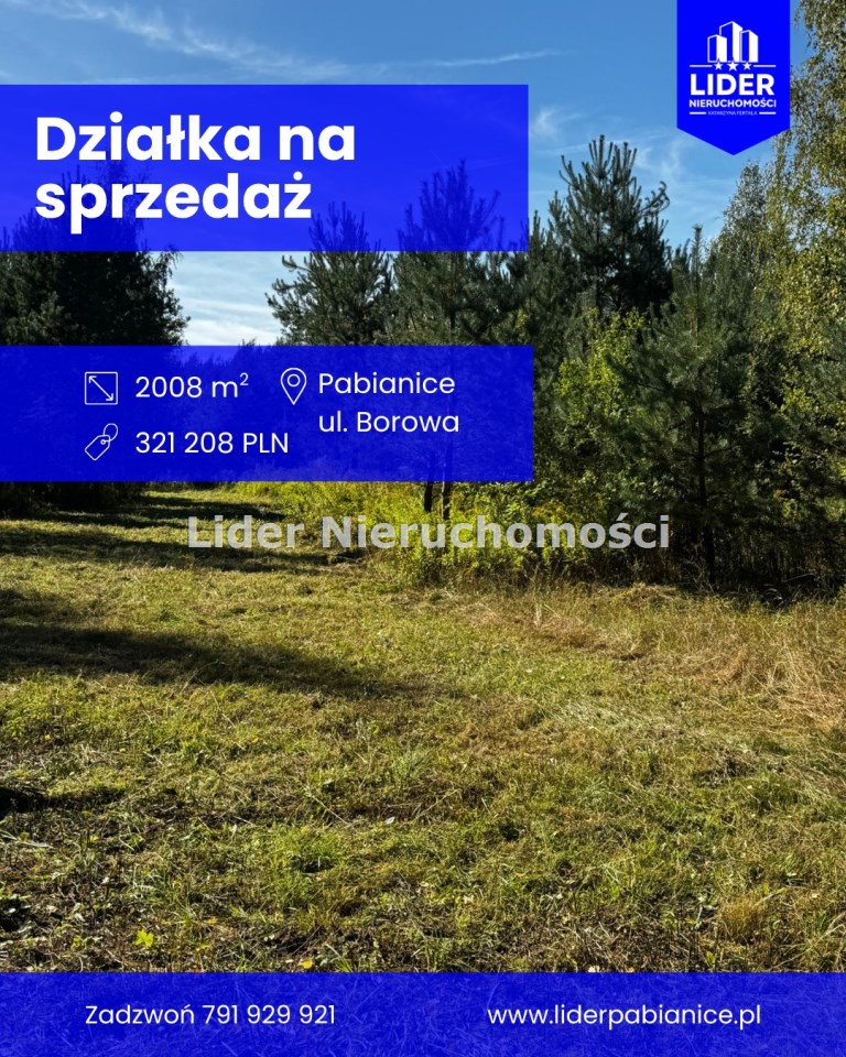 Na sprzedaż: Działka budowlana 2 008 m² – Pabianice, ul. Borowa