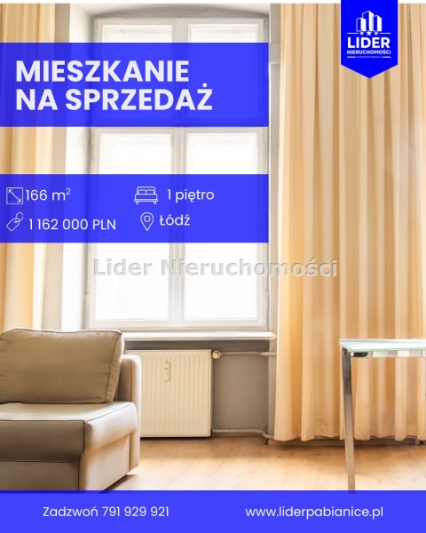 Na sprzedaż – Mieszkanie w Łodzi | 166 m² | 1 piętro z windą | 1 162 000 zł