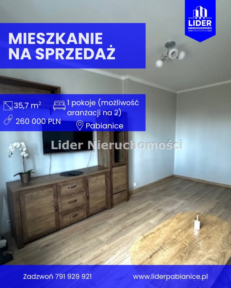 Na sprzedaż oferuję mieszkanie o powierzchni 35,70 m², położone na 3. piętrze w zadbanym bloku przy ul. Dąbrowskiego w Pabianicach.